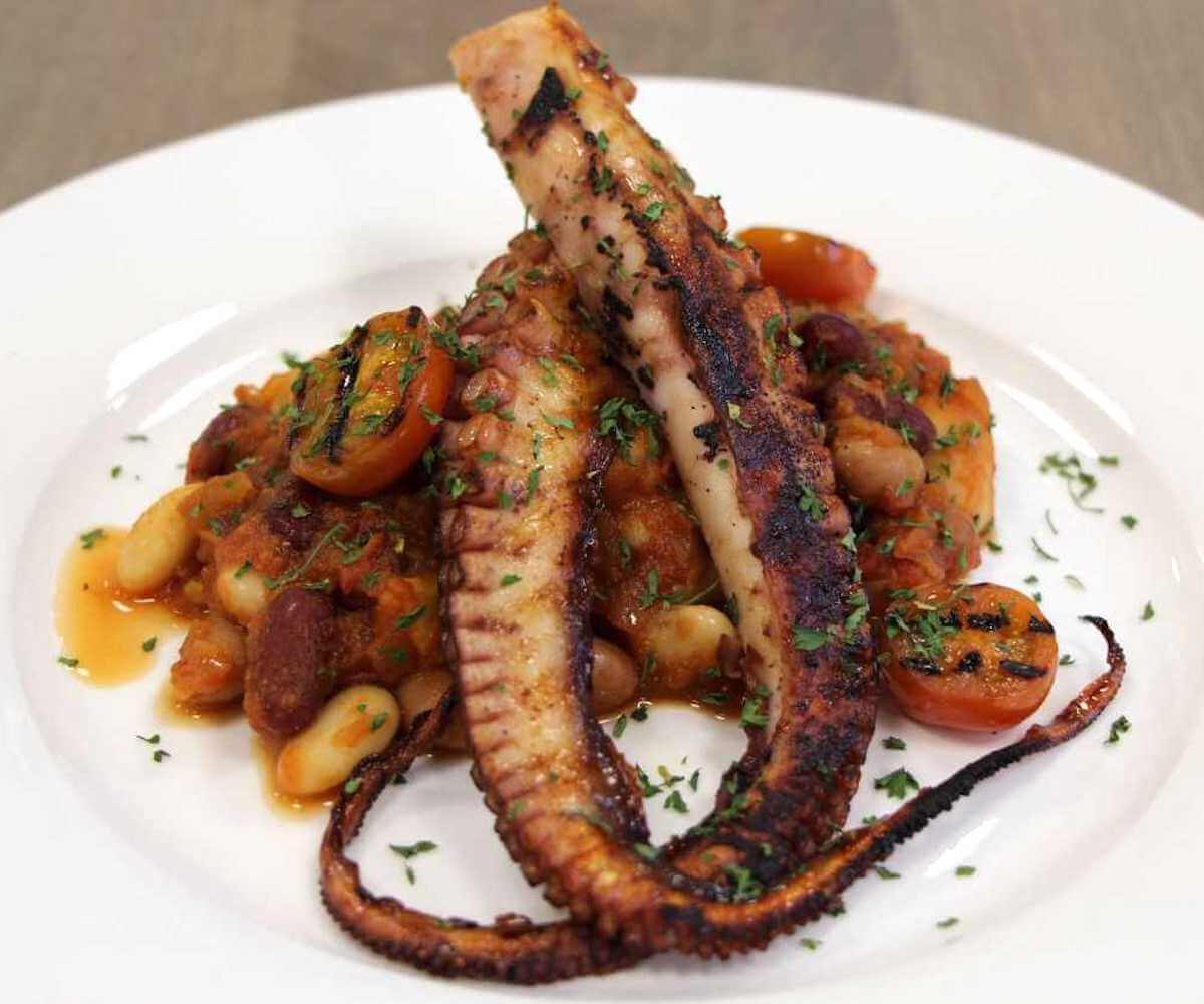 Grilled Fremantle Octopus with a trio of beans and sugo