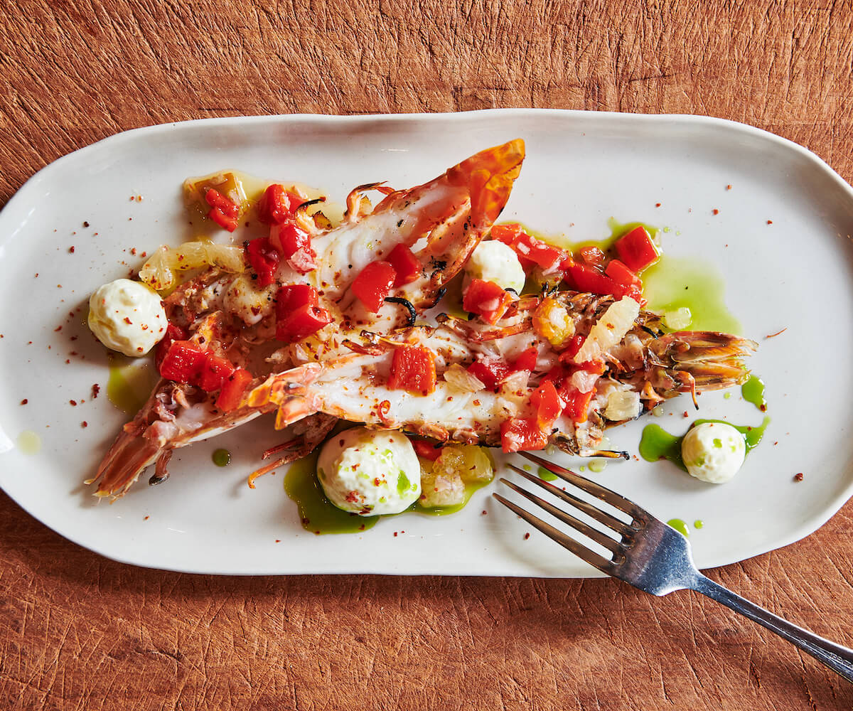 Grilled Shark Bay tiger prawns with Carnarvon red pepper salsa by Russell Blaikie